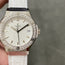 Caja tonneau en cerámica blanca que desafía los rayones, bisel atornillado con tornillos en “H” y un movimiento visible que late sin esconderse. No llevas un reloj: llevas arquitectura contemporánea en la muñeca.